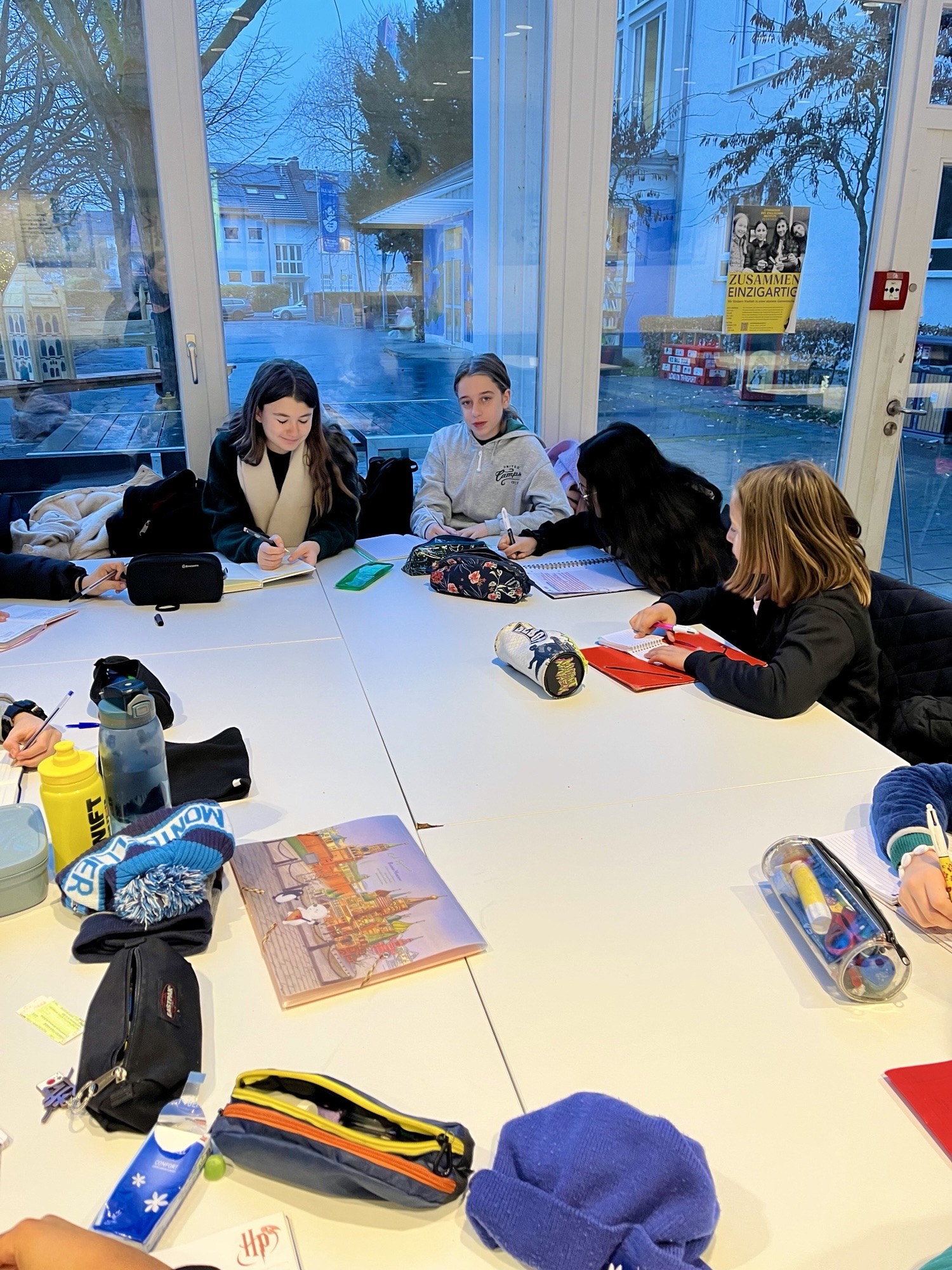 Après un long trajet en bus hier (12h !), ce matin, les élèves ont retrouvé leurs enseignantes à l'Englisches Institut (notre collège partenaire) à 7h50.