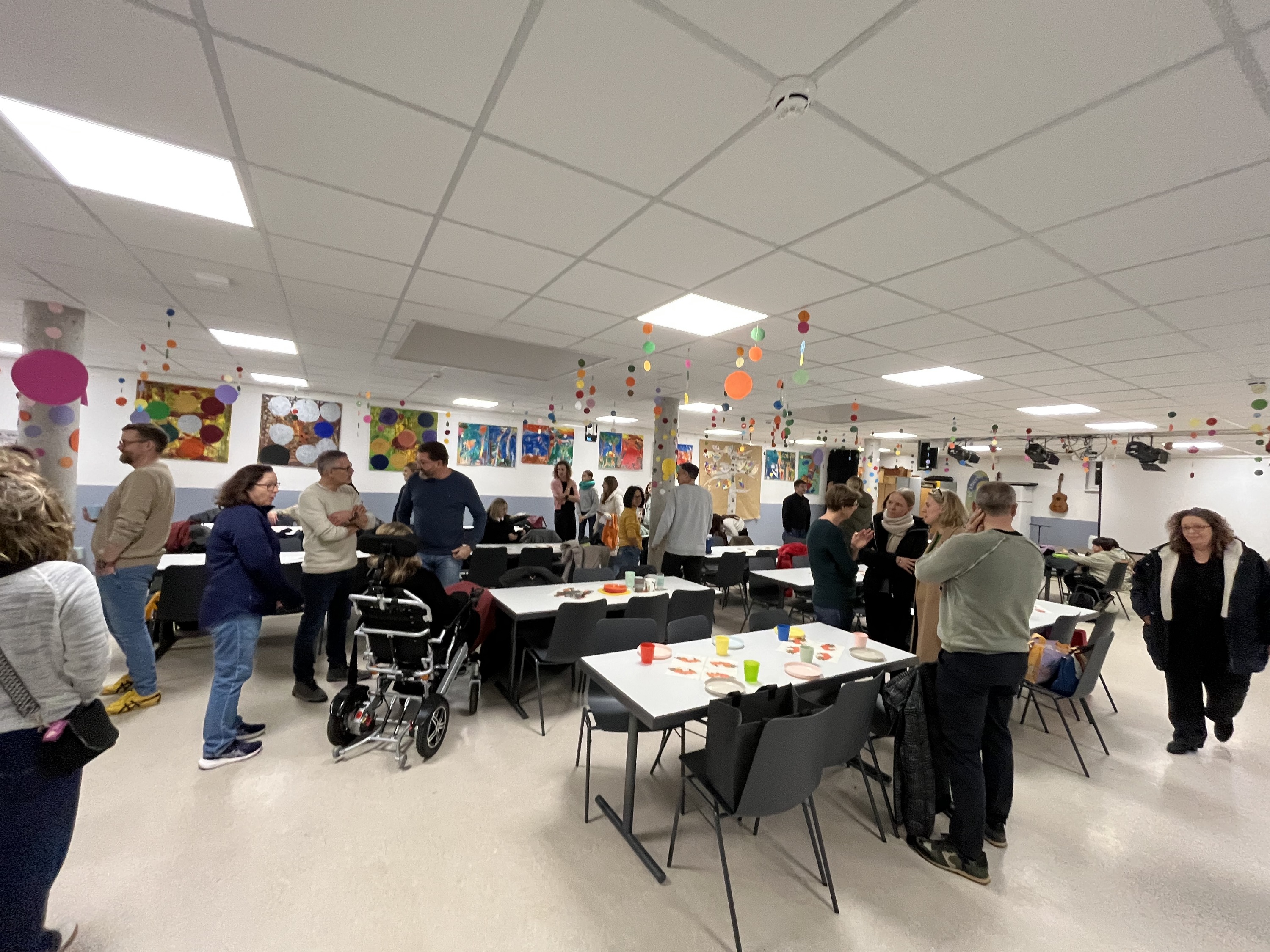 Puis tout le groupe a été accueilli par les collègues et la cheffe d'établissement dans le Milchbar avec un petit-déjeuner offert.