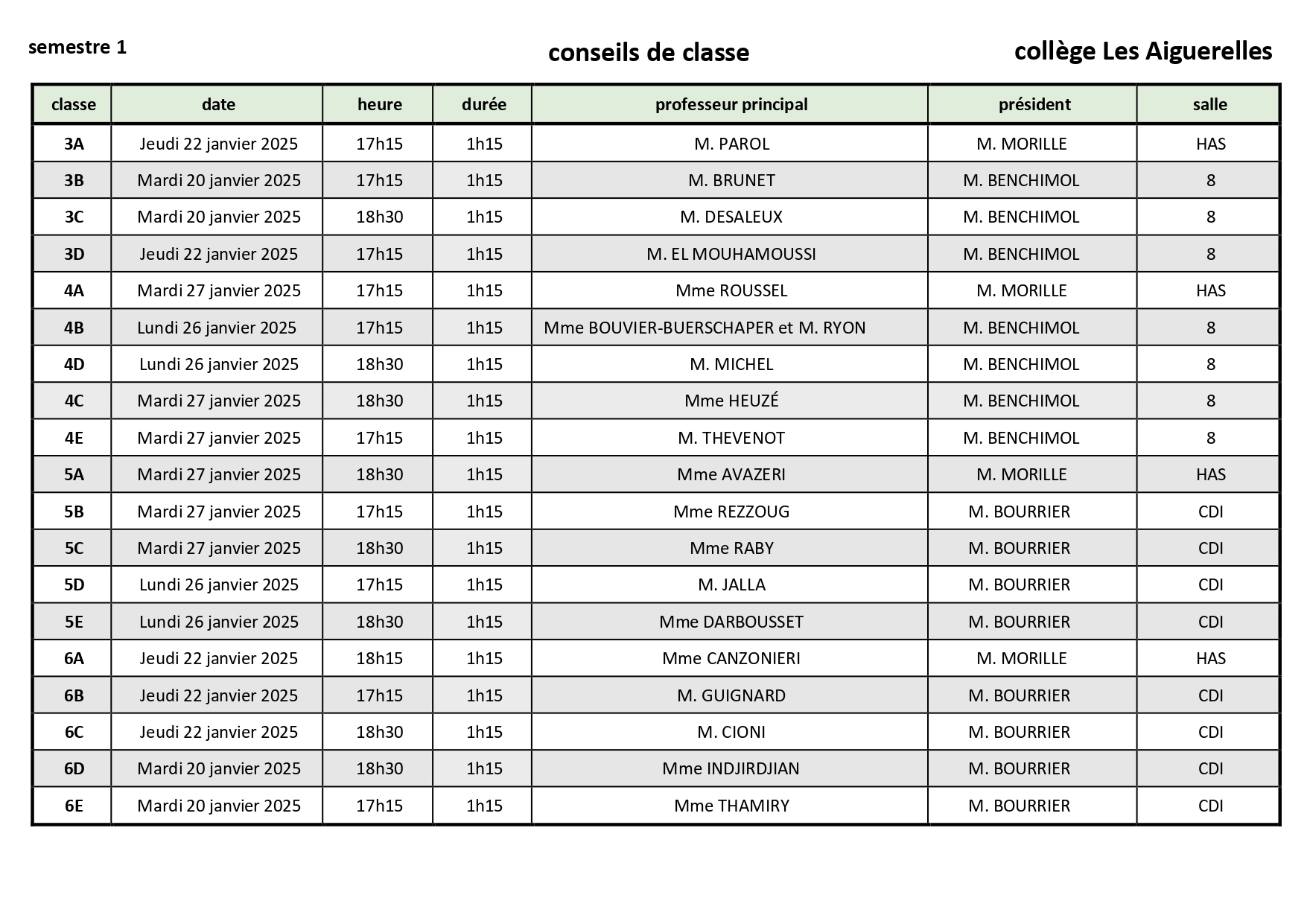 conseils de classe du semestre 1